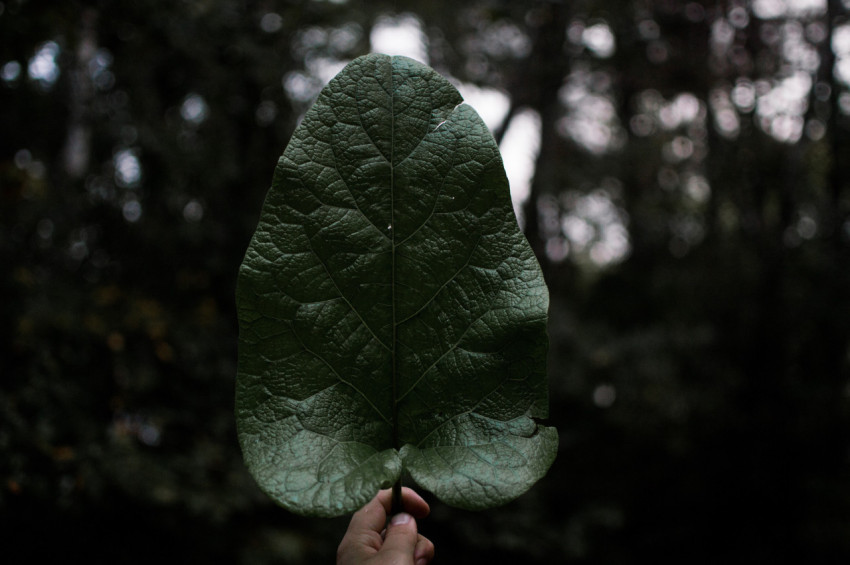 Большой зеленый лист в руке