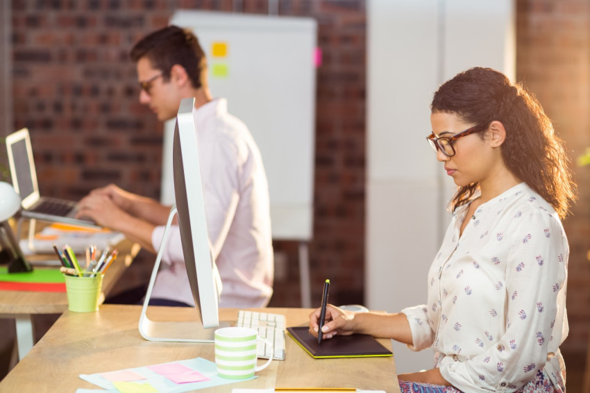 20s young adult man male caucasian woman female office workplace graphic designer entrepreneur executive career smart casual working designing creating presentation digitizer graphic tablet table digital artist profession professional occupation job stylus computer desktop pc electronic personal computer keyboard creativity skill business lifestyle corporate company reliability expertise leadership concentration обучение образование графичекий дизайнер офис креаторПохожие фото