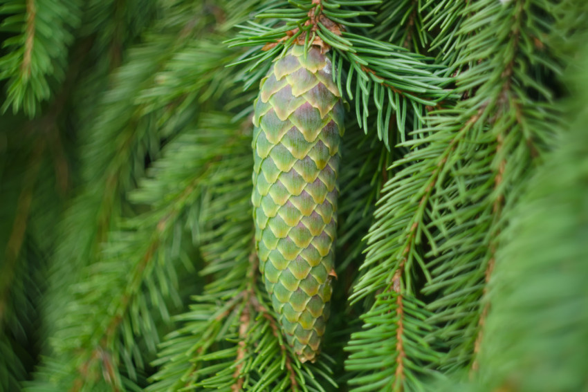 Еловая хвоя и шишка