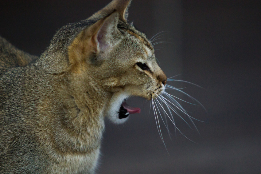 Кошка широко зевает