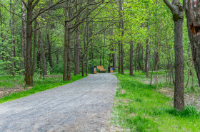 Лестница в парке. Осенняя аллея с желтыми листьями. Пенза. Тропа здоровья.