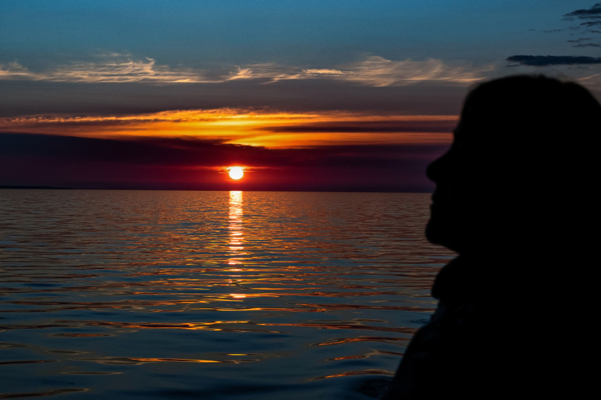 Мужчина спиной на крыше здания на фоне города смотрит вдаль на закате