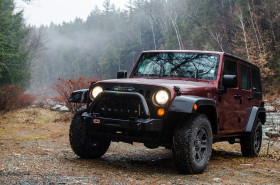 Jeep Wrangler в лесу у реки