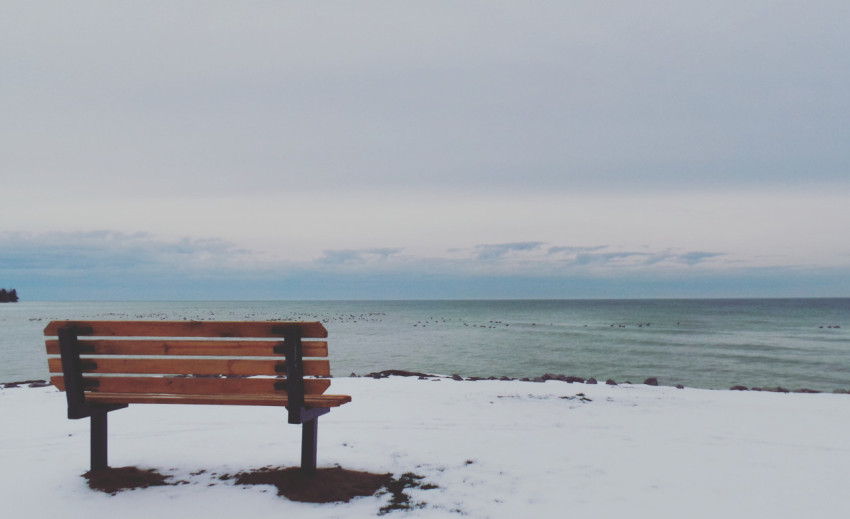 Скамейка море зима