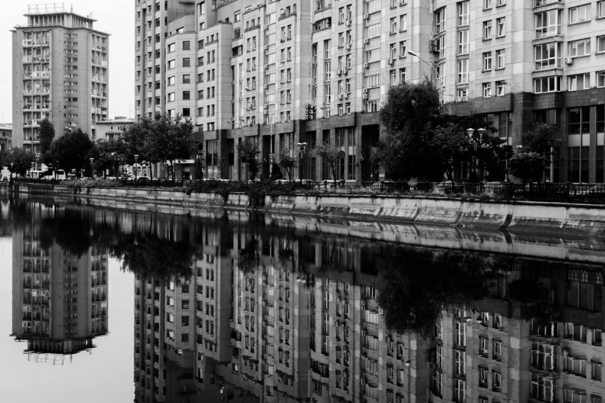 Два небоскреба черно-белая фотография