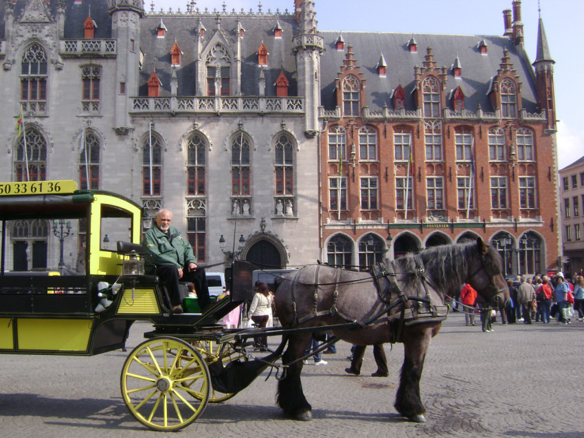 Конная туристическая повозка на улицах Брюсселя