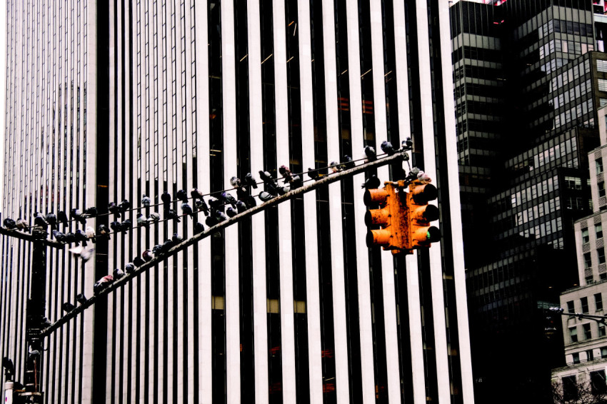 Светофор на фоне небоскреба