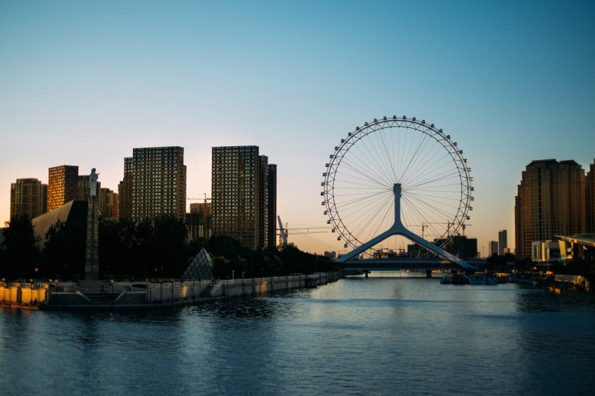 город городской пейзаж городская среда city cityscape urban city landscape Тяньцзинь колесо обозрения Китай Тяньцзиньский глазПохожие фото
