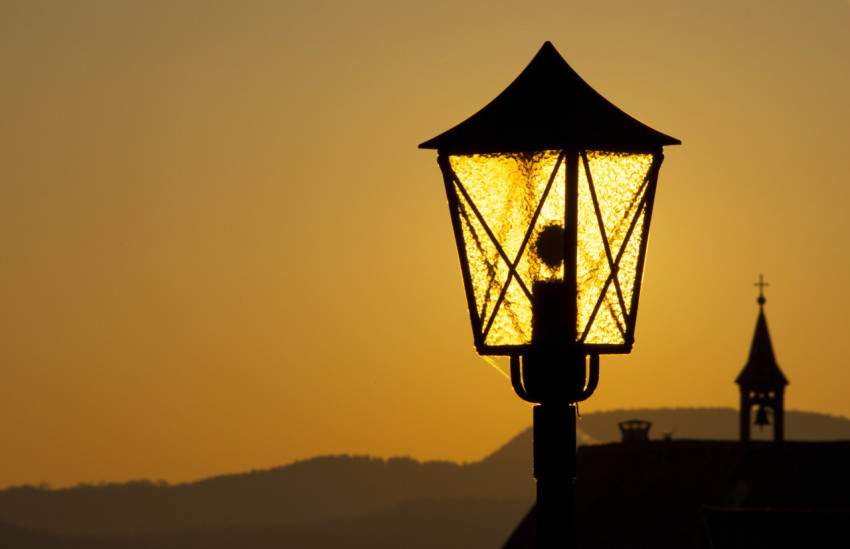 Городской уличный фонарь на закате