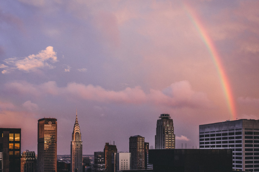 Радуга в небе над городом