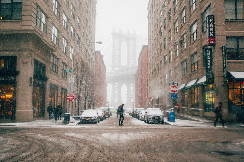 город городской пейзаж городская среда city cityscape urban city landscape зима зимний Нью Йорк НьюЙорк США Америка улица зимой МанхэттенПохожие фото
