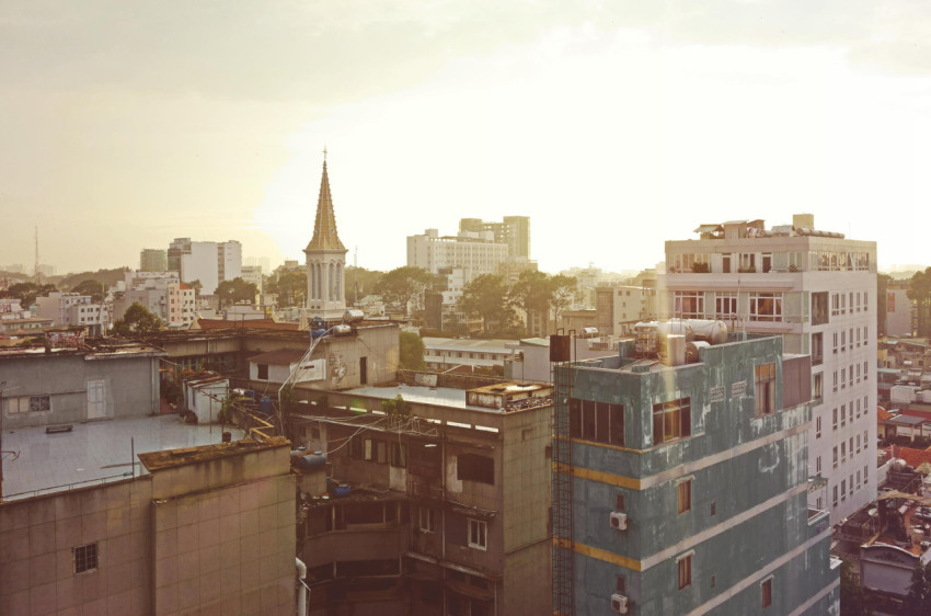 Вид из окна дома на город