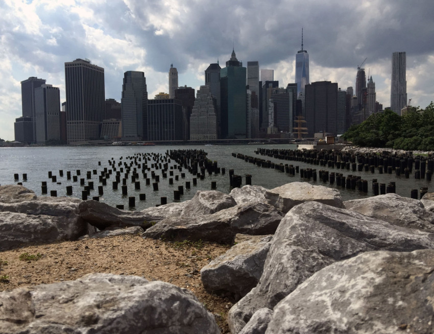 Вид на небоскребы Нью-Йорка с Brooklyn Bridge Park