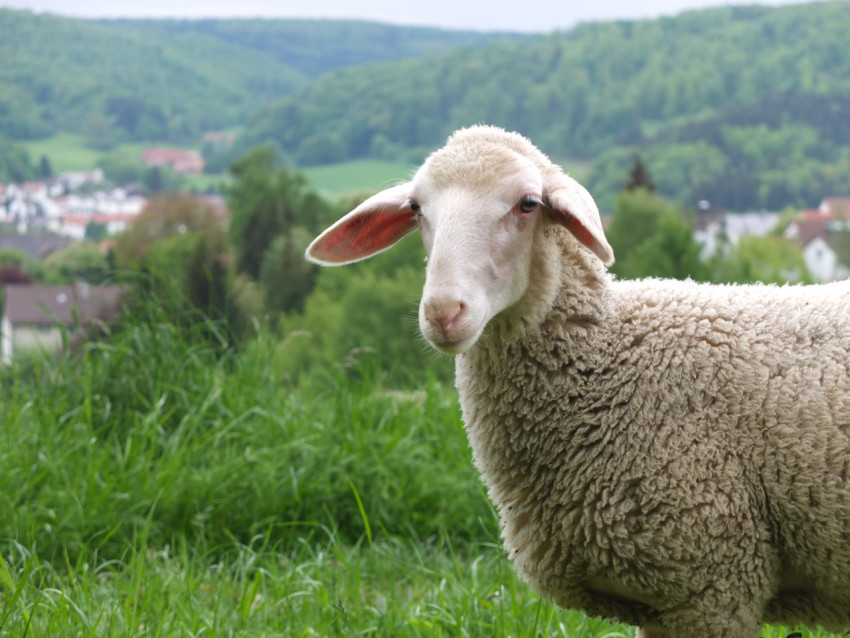 Белая овца в поле