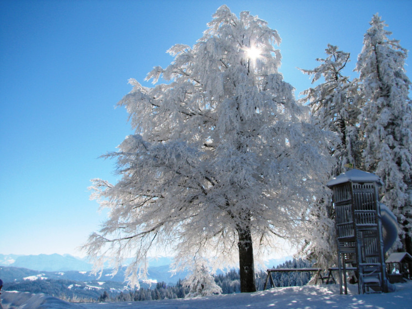 Деревья в снегу зимой