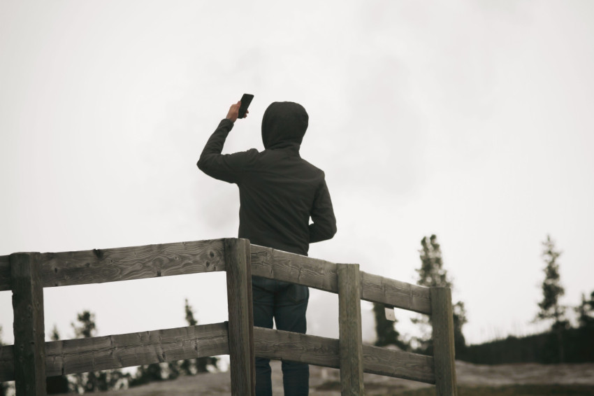 Мужчина спиной сидит со скейтом на лестнице на фоне пляжа