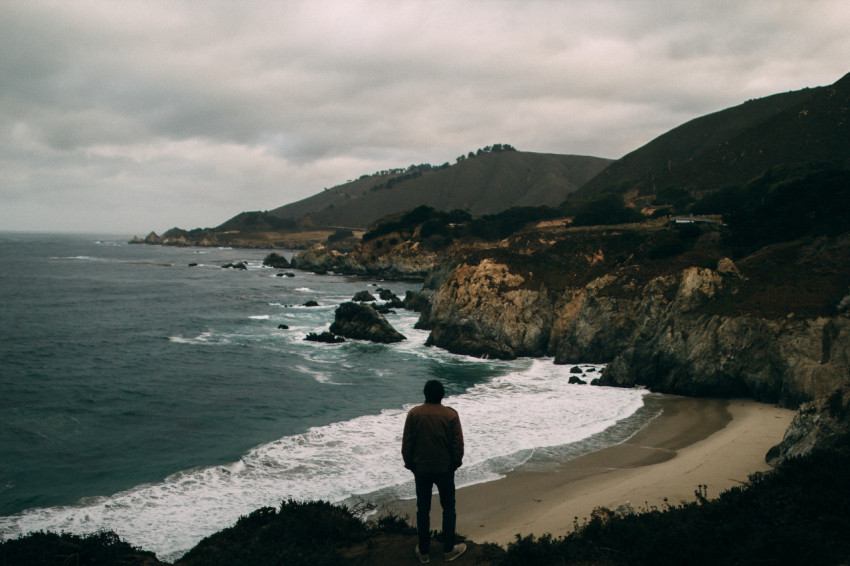 Человек на скалистом побережье моря