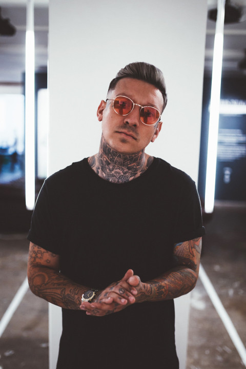 Парень с татуировками в черной футболке