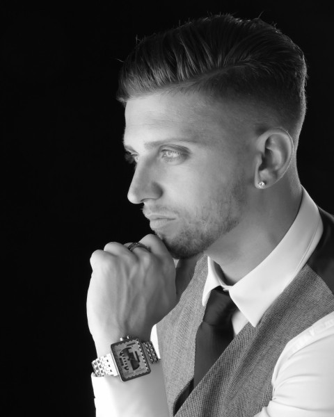 Чернокожий парень в красной шапке с голым торсом на фоне кирпичной стены