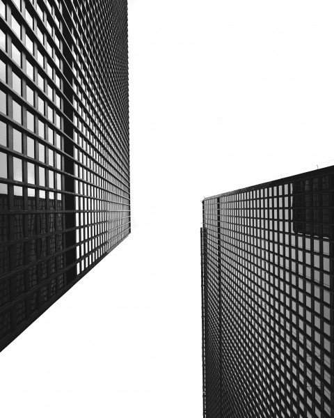 Два небоскреба черно-белая фотография