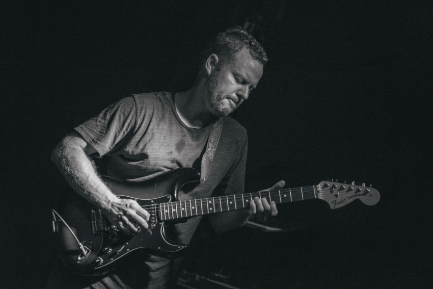 Гитарист на черном фоне