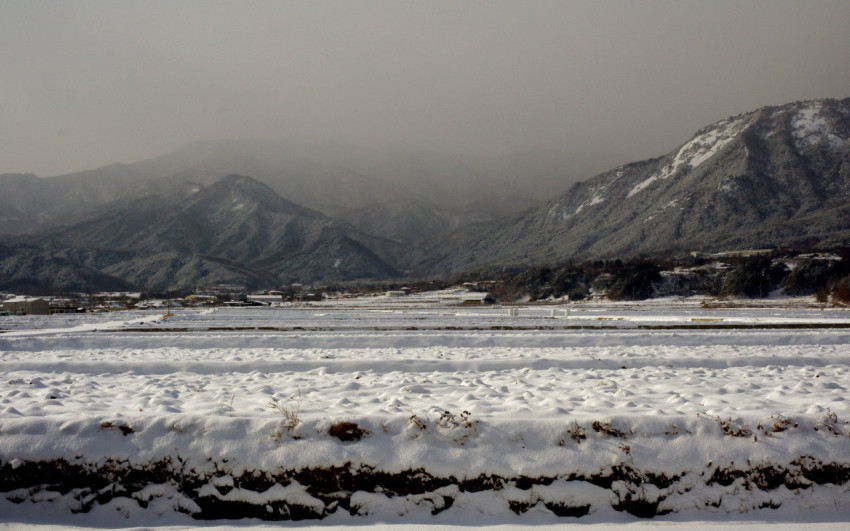 Photograph by Thomas Clothier 2010 Daegyu Mountain from Wicheon village school, in the county of Geochang, South Gyeongsang Province - Korea