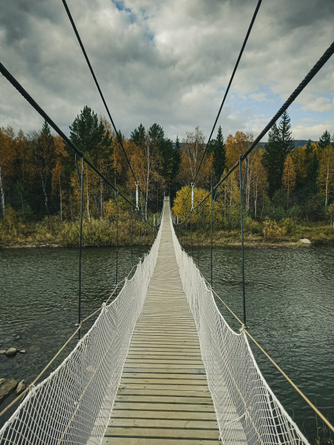 Подвесной мост через реку