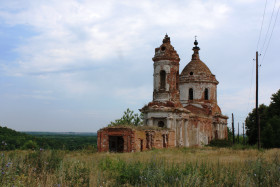 Полуразрушенный храм, 2009 год . Согласно последним данным был построен в 1803 году. В 2013 году было начато восстановление и закончено в 2022 году. Освящен в честь иконы Казанской Божией Матери. Село Чириково, Турковского р-на, Саратовской области. Балашовская епархия. (Фото Александра Власова)