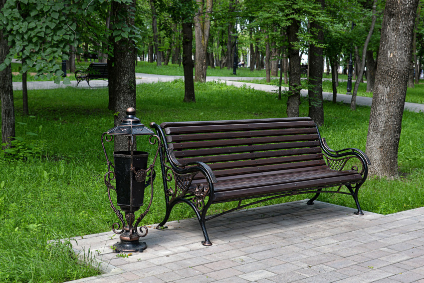 Лестница с красными перилами. Осенняя аллея в парке. Пенза. Тропа здоровья.