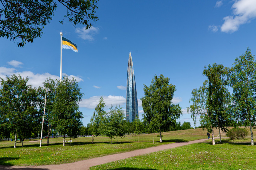 Осенняя аллея в парке. Дорожка с красными фонарями. Пенза. Тропа здоровья.