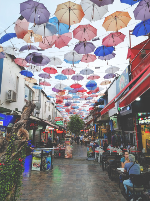 Улица зонтиков располагается в историческом месте Анталии — в районе Старого города Калеичи, неподалёку от Часовой башни и бульвара Ататюрка. Этот район также известен своими старинными постройками.