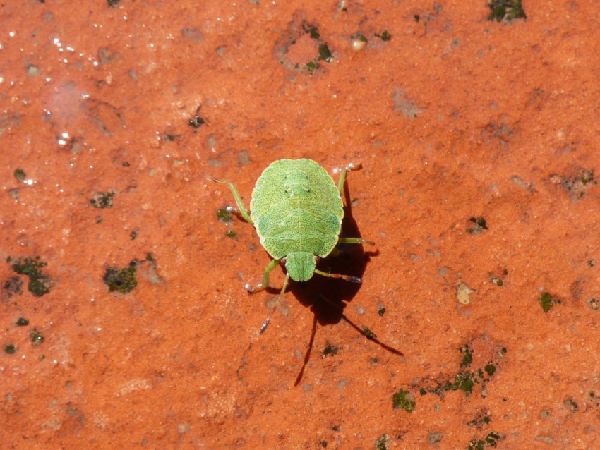 Щитник зелёный древесный - насекомое из семейства щитниковых. Оно получило свое название благодаря зеленому окрасу, который помогает ему маскироваться под веточку дерева. Щитники зелёные древесные обитают на деревьях и кустарниках, питаясь соками растений и защищаясь от хищников. У них хорошо развитые щитки, которые служат защитой и помогают сохранять неприметность. Эти насекомые прекрасно приспособлены к своей среде обитания.