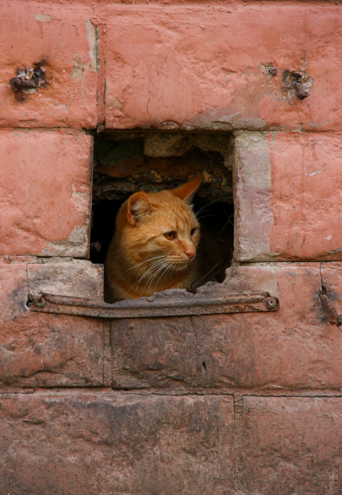 Случайно пойманный кадр, робко рассказывающий о том, как кошка выглянула в "окошко", и наблюдает за окружением на улице