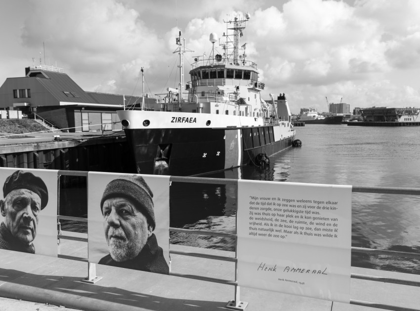 Черно-белая фотография корабля Zirfaea в порту Роттердама