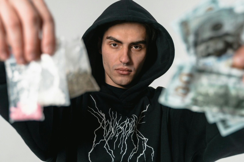 Незаконный оборот нароктиков, мужчина держит наркотики и деньги