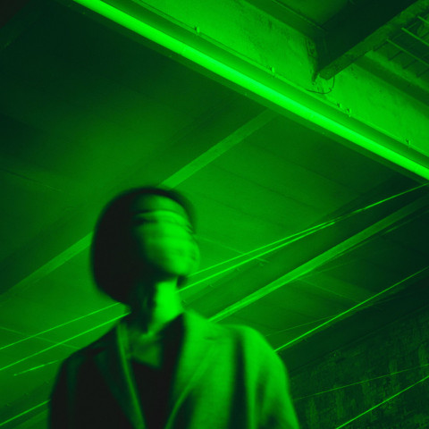 Лицо женщины в движении на зеленом светлом фоне