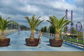 олимпийский парк пальмы в больших емкостях широкая синяя трасса велосипидисты Сочи Адлер РоссияПохожие фото