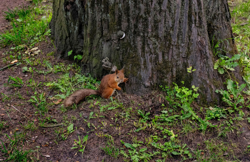 Белка в городском парке