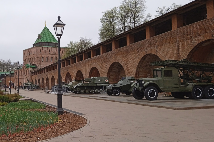 Военная техника у стены Нижегородского кремля