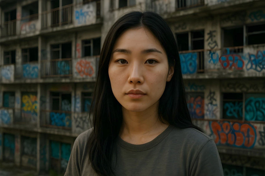 Девушка плавает морозным утром в озере со льдом на поверхности