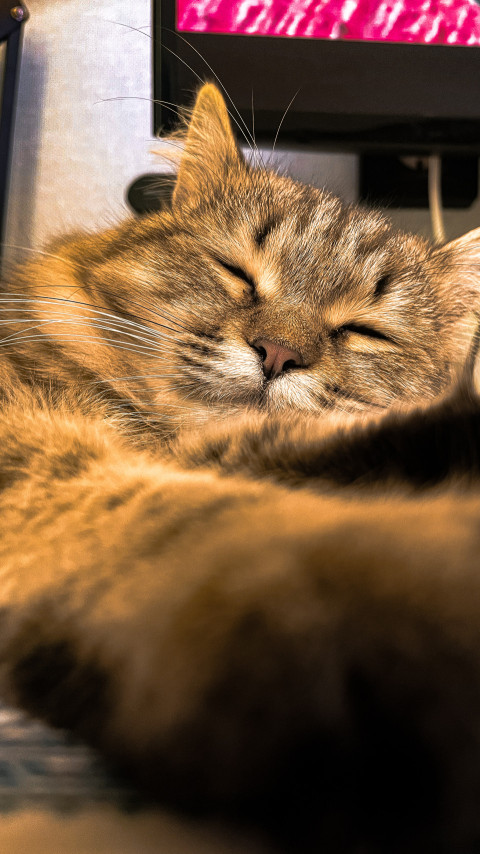 Кошка лежит на спине