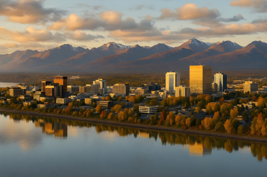 анкоридж аляска осенний осень сша город городской пейзаж вид на город с высоты на закате вечеромПохожие фото
