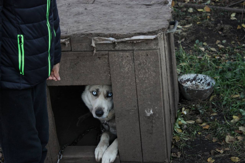 Собака в будке в деревне