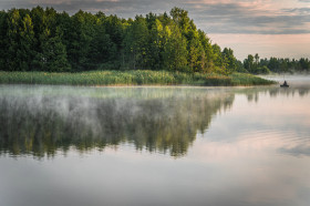 рыбак в лодке ловит рыбу