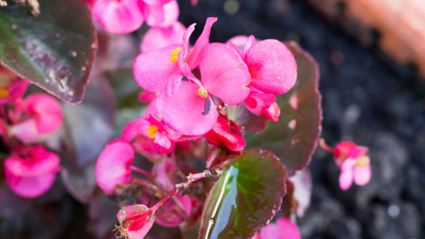 Красная садовая бегония. Снято утром 30.06.2025 года.