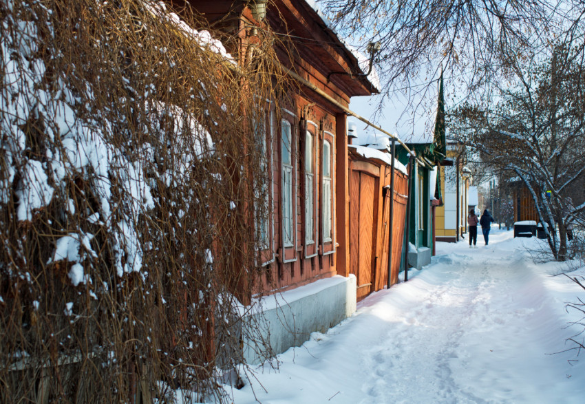 Зимняя улица. Дома старой постройки. Елец. Засосенская часть города. Снято 04.01.2022 года в полуденное время.