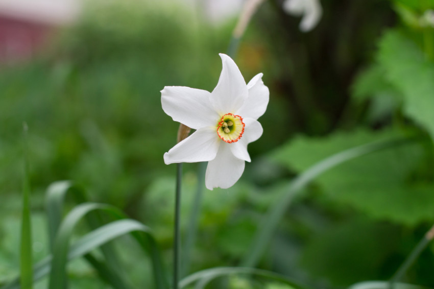 Белый нарцисс. Дворовая клумба. Начало мая.