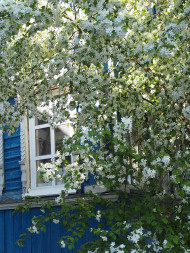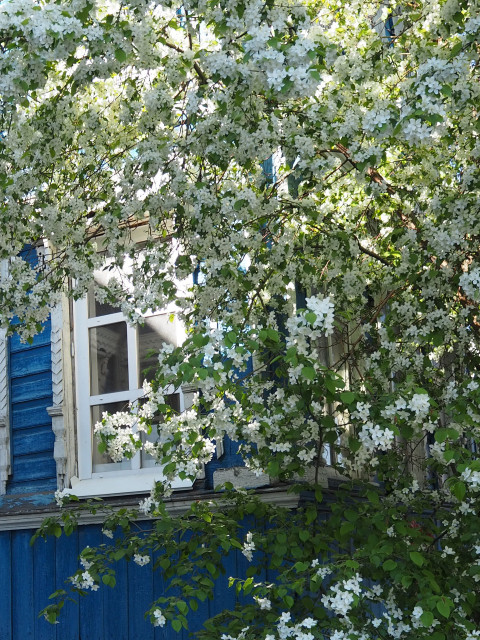 яблоня яблоня цветет цветущая яблоня весна деревянный дом деревянный наличник дерево под окном яблоня под окном цветение май красота город весной весенний деньПохожие фото