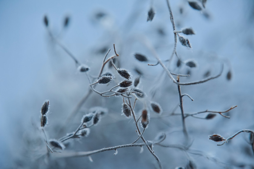 Растение, покрытое инеем