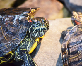 Красноухая черепаха. Ботанический сад КемГУ. Кемерово